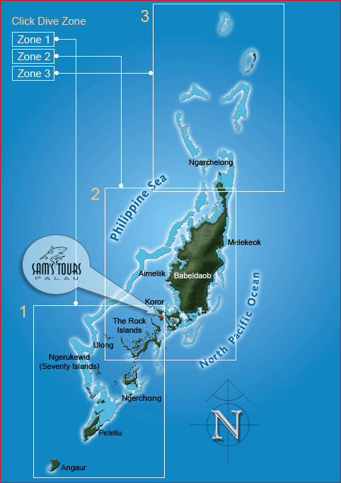 Dive Site Zone 1 Siaes Corner Siaes Tunnel Ulong Channel Shark City Blue Holes Blue Corner Virgin Blue Hole Ngemelis Coral Garden New Drop-off Fern's Wall (Turtle Wall) Big Drop-off Ngemelis Wall German Wall / Channel Clam City Wonder Channel Jellyfish Lake (snorkel) Ngerchong Inside Ngerchong Outside Alice's Garden Barnum's Wall Turtle Cove Ngedebus Coral Garden Ngedebus Corner Ngedebus West White Beach Point Orange Beach South Dock Peleliu Wall Peleliu Cut Peleliu Corner Peleliu Express Yellow Wall Honeymoon Beach Santa Maria Point Runway Wall USS Perry (Tec/Trimix) Dive Site Zone 2 Devilfish City West Channel Satan's Corner Devil's Playground Teshio Maru Jake Seaplane LST Type 1 Ryuku Maru Pinchers Lagoon Amatsu Maru Chuyo Maru Chandelier Cave Gozan Maru Helmet Wreck Mandarinfish Lake Zeke Fighter (upside down) Short Drop-off Lighthouse Express Lighthouse Channel Buoy 6 Wreck Sata Tanker Iro Kamikaze Maru Bichu Maru Zeke Fighter (snorkel) Raizan Maru Dive Site Zone 3 Velasco Reef George Bush Wreck Destroyer Samidare Blue Hole Kayangel Wall Kayangel Atoll