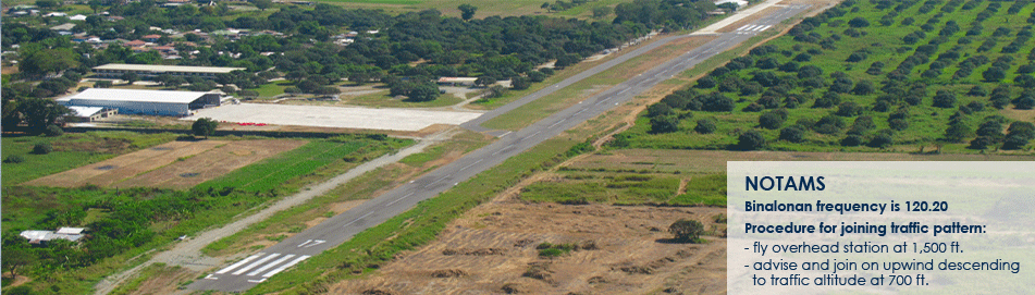 Binalonan Airfield offers flight services to business, individual, and flight training patrons, featuring an 850 meter north-south runway capable
